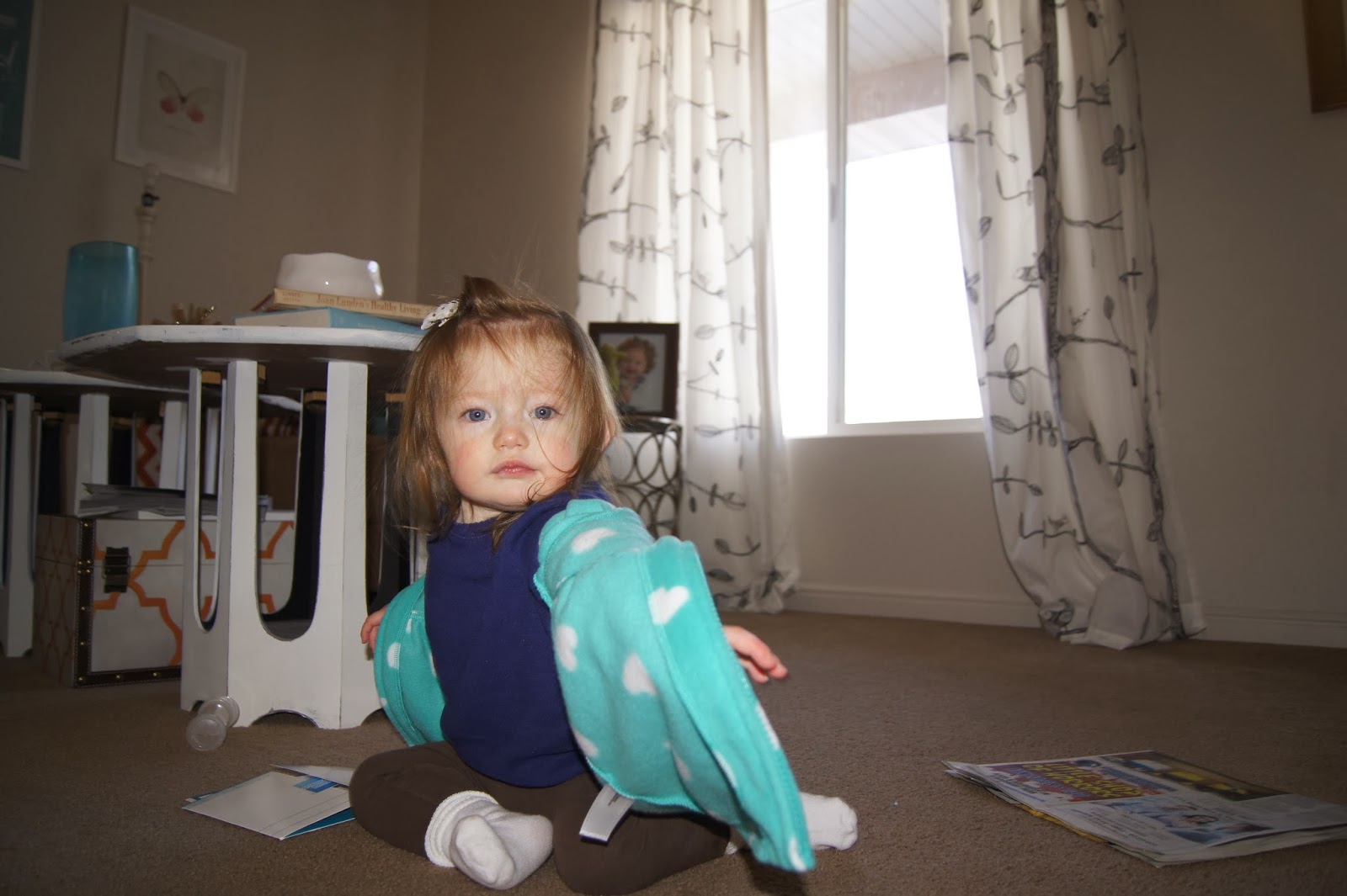 Here's the deal: Grace has a fetish with putting things on her head. Mostly she loves this cardigan. I can't wear it around her because she will throw a fit and try to take it off me.